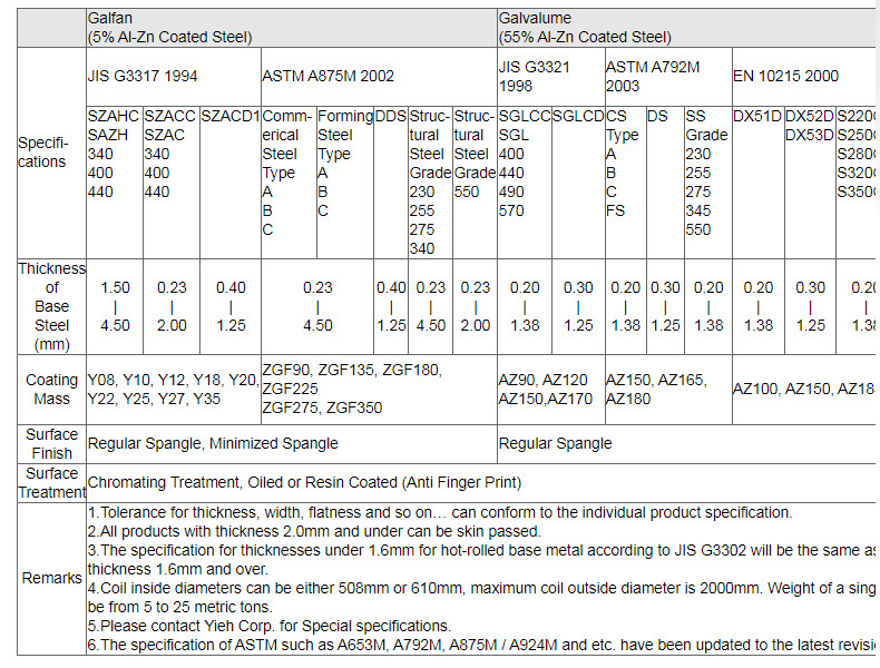 Hot-dip Galvafan Steel Coils (5% Al-Zn Coated)Thickness: 0.25~4.5mmWidth: 70~1280mm